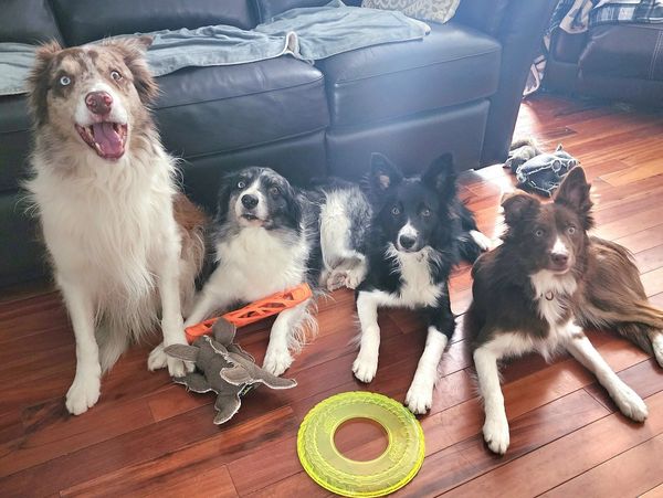 Aside from competing in agility we also have a very small hobby breeding program (not currently active). Our foundation dog Scotts Tri-Trixie was bred to LMNS Tater and produced 4 litters.