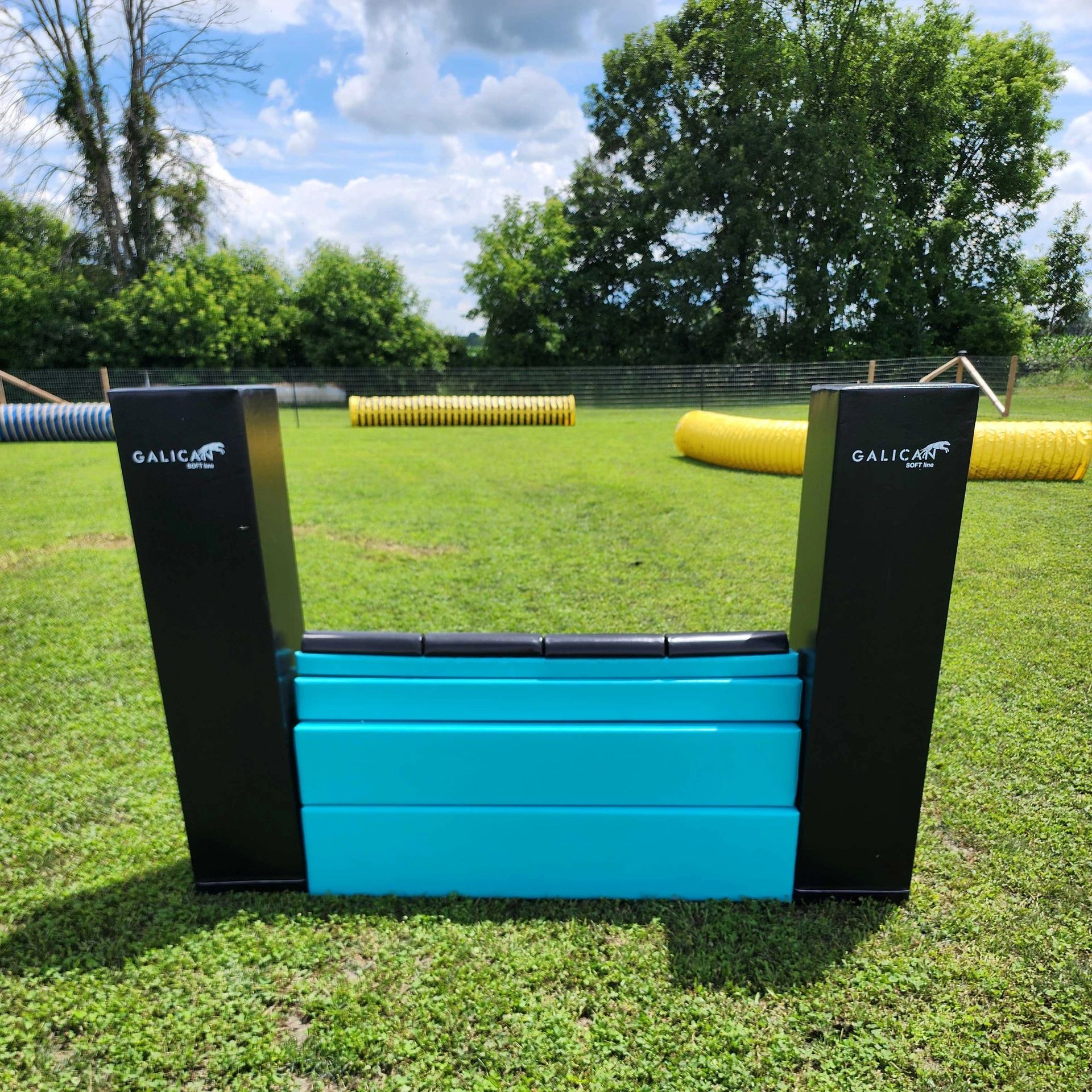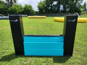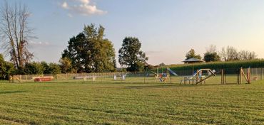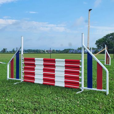 We currently have one fully fenced in 100’x120’ agility ring with 4’ high 2”x4” fencing and all of AAC approved agility equipment.